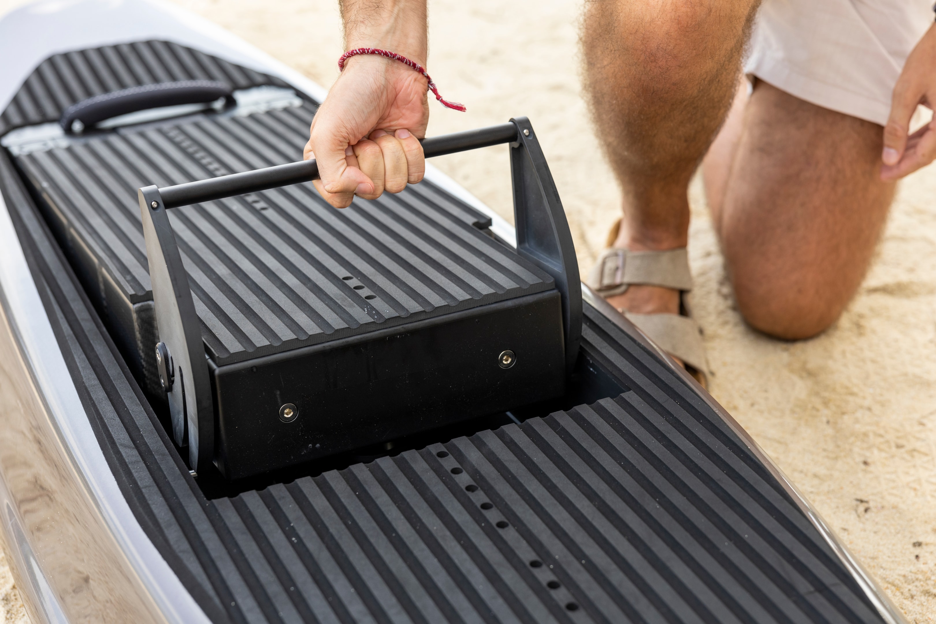 Le fonctionnement est simple : une fois debout sur la planche, on utilise la télécommande pour contrôler la vitesse et ajuster l’équilibre en fonction des conditions de mer et de la condition physique du pratiquant.